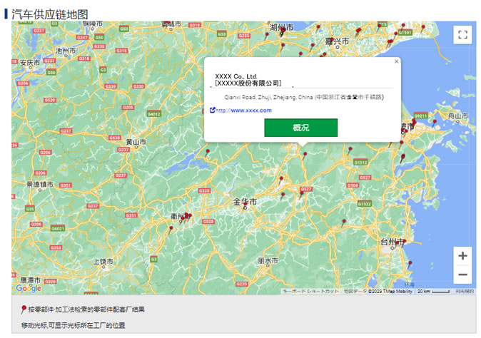 可在地图上确认检索到的公司所在位置。