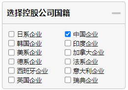 点击“选择控股公司国籍”,勾选想要查看的企业国别。
