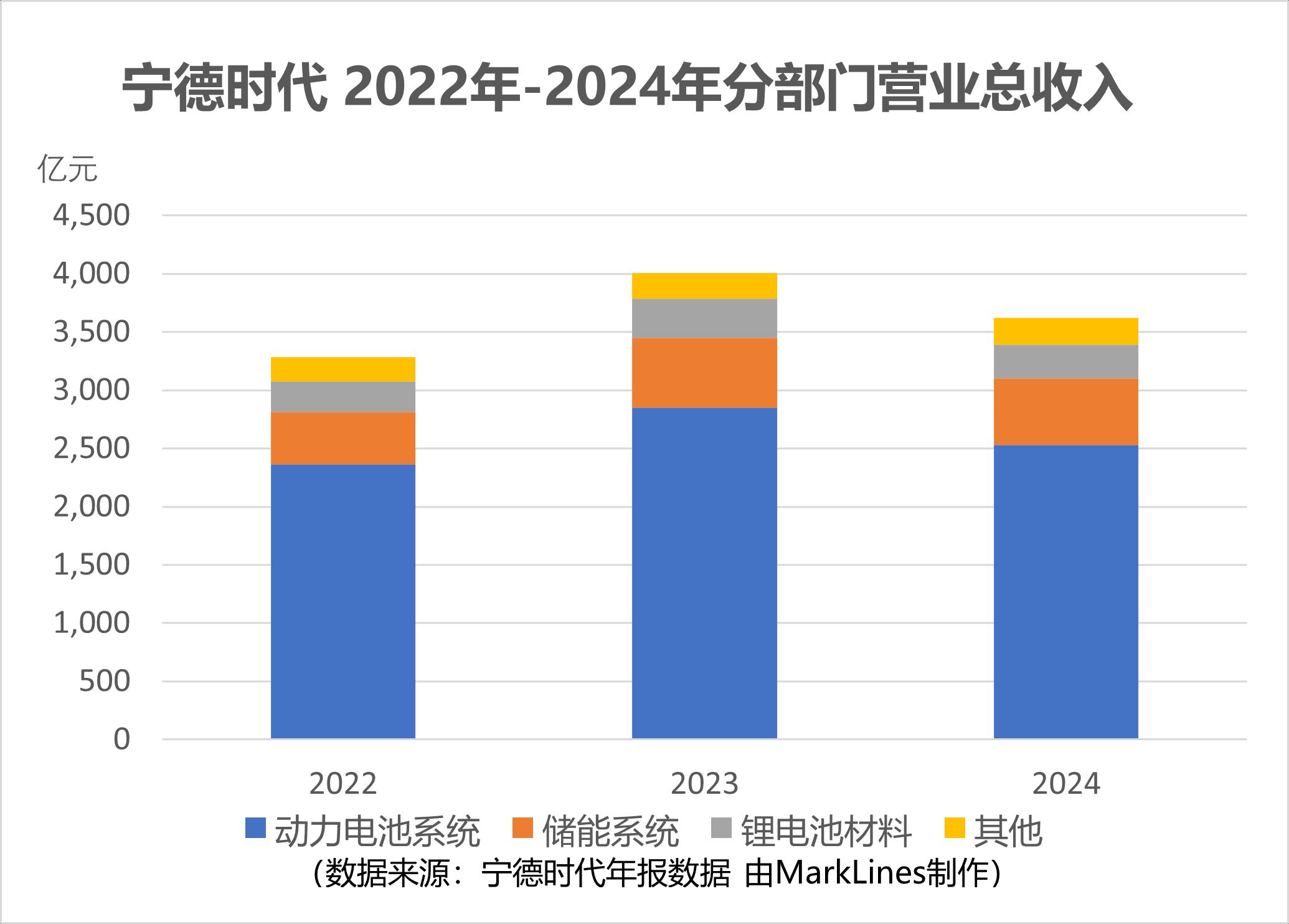 -公司主要业务为新能源动力电池业务,2024年全球市场新能源汽车销量达1,763万辆,同比上涨26.1%。全球动力电池使用量达894.4GWh,同比增长27.2%。动力电池市场需求增加,使营业利润上涨。由于碳酸锂等原材料价格下降,公司产品价格相应调整,导致营业收入下降。