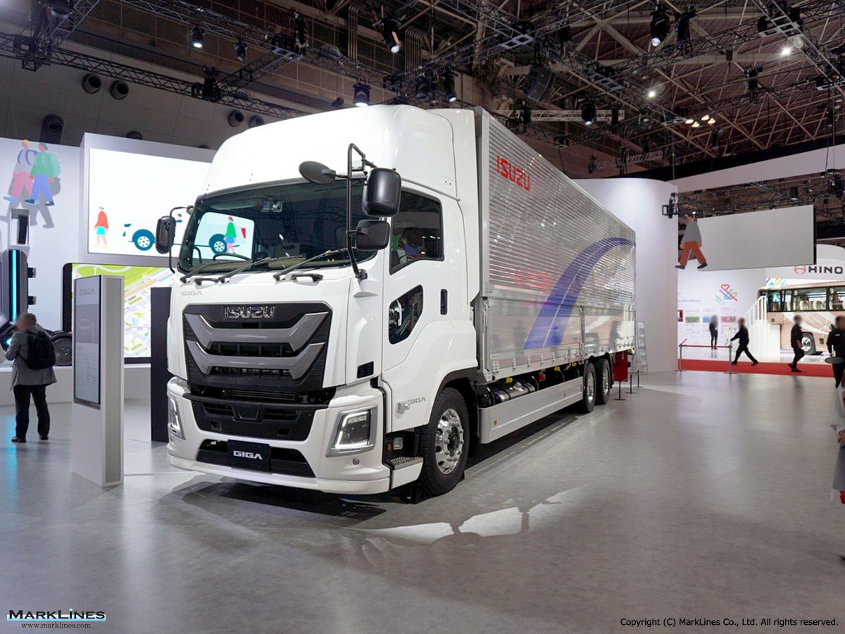 ・いすゞは、多彩な架装に対応する革新的な縦型フレーム「バーチカルコア」を採用したコンセプトカー「VCCC (Vertical Core Cycle Concept)」を世界初公開した。さらに、約10年ぶりにキャブエクステリアを一新した燃料電池大型トラック「ギガ」などを出展した。「ギガ」は最高出力279kW、最大トルク1,814Nmで、最大積載量は1万4,300kg。