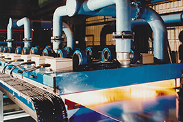 既存の熱風炉の前に赤外線乾燥促進システムを組み合わせたハイブリッド式熱処理プロセスを利用することで、熱風炉のみでの乾燥に比べ、塗膜品質が改善し、熱風によるコンタミの混入を防止することができます。また、ガス使用量の削減によるCO2排出量の低減にも大きく寄与することができます。