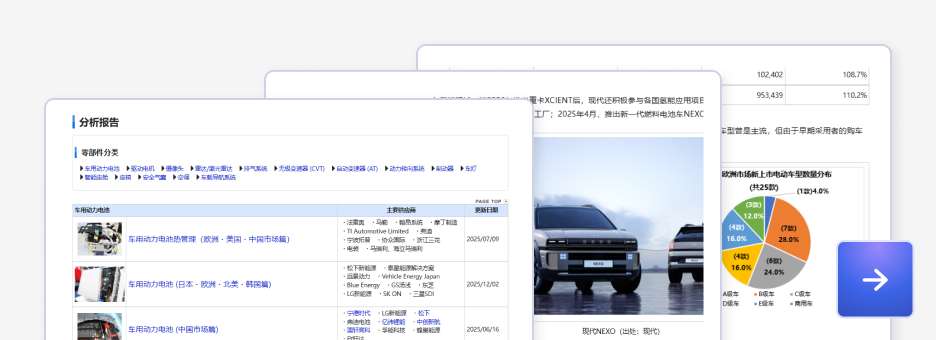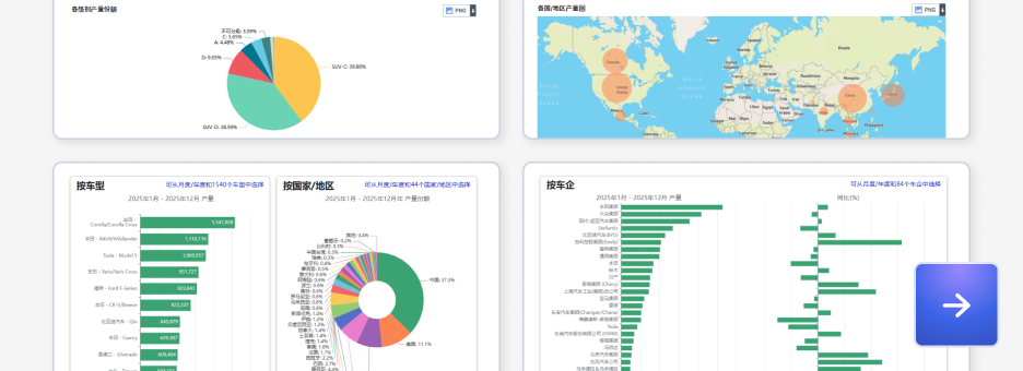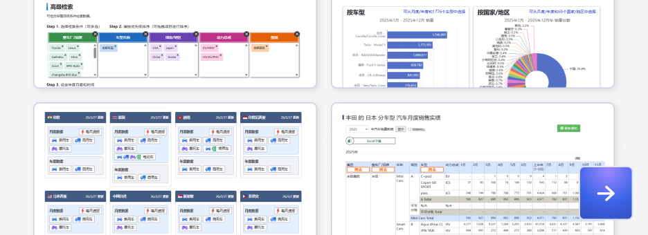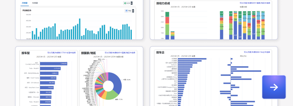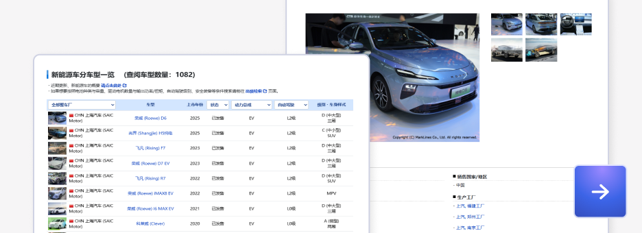数据库覆盖全球各国分车型月度产销数据、新能源车销量数据、各动力类型细分数据、中国乘用车零售量等数据。